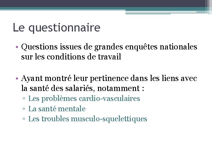 Questionnaire Salari? Condition De Travail